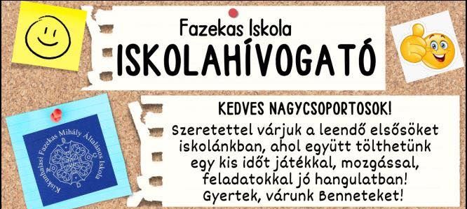 Nyílt nap – 2026. március 2. (hétfő)Szeretettel várjuk a leendő elsős gyermekek szüleit 2026. március 2-án, hétfőn 7:45-től iskolánk nyílt napjára.A látogatók betekintést nyerhetnek:- a tanítás mindennapjaiba,- az alsó tagozatos órák hangulatába,- valamint megismerhetik pedagógusainkat és az iskolai környezetet.Ez kiváló alkalom arra, hogy első benyomást szerezzenek az iskoláról, és választ kapjanak a felmerülő kérdésekre. Iskolanyitogató foglalkozások – márciusbanMárcius folyamán több…